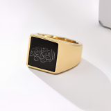 Embrace faith and style with this stunning Gold Islamic Signet Ring, featuring a polished black onyx stone engraved with the meaningful Arabic phrase “Alesallah hu bekafin Abdahu.” This exquisite piece combines spiritual significance with modern elegance, making it a perfect accessory for daily wear or special occasions.