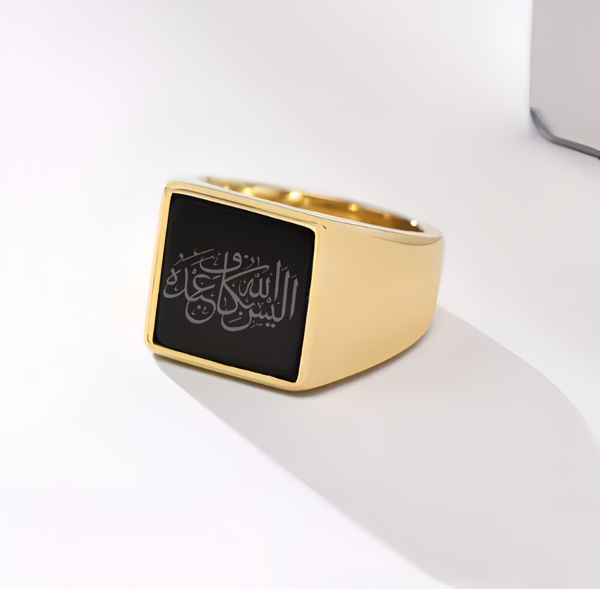 - Intricate Arabic Calligraphy: The phrase “Alesallah hu bekafin Abdahu” is beautifully engraved, reflecting a powerful spiritual message and Islamic heritage.