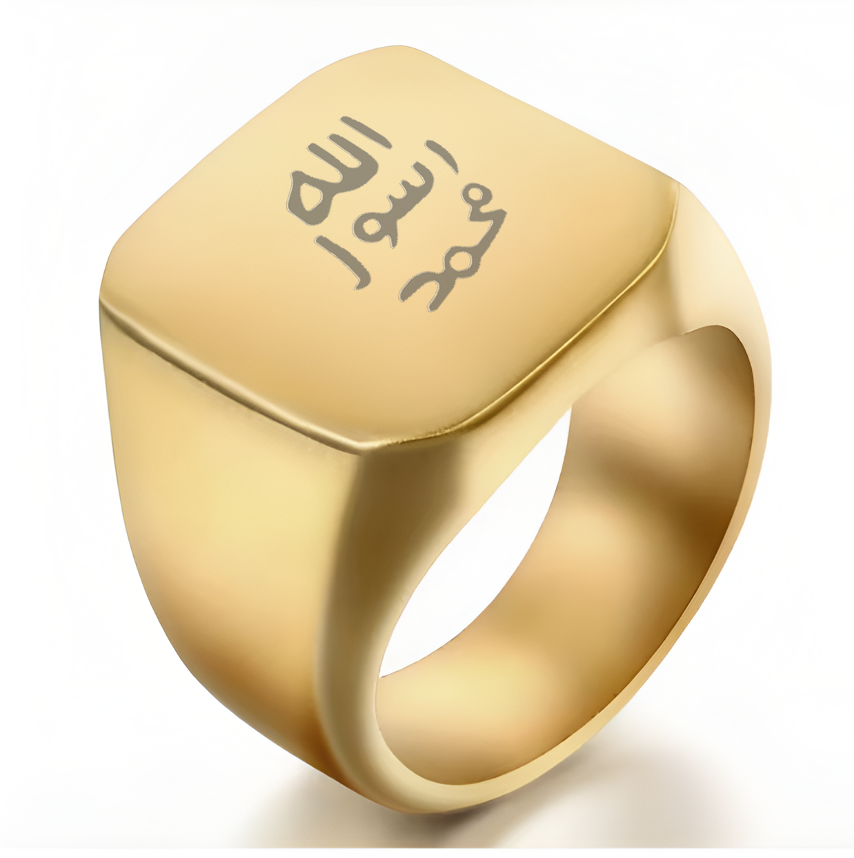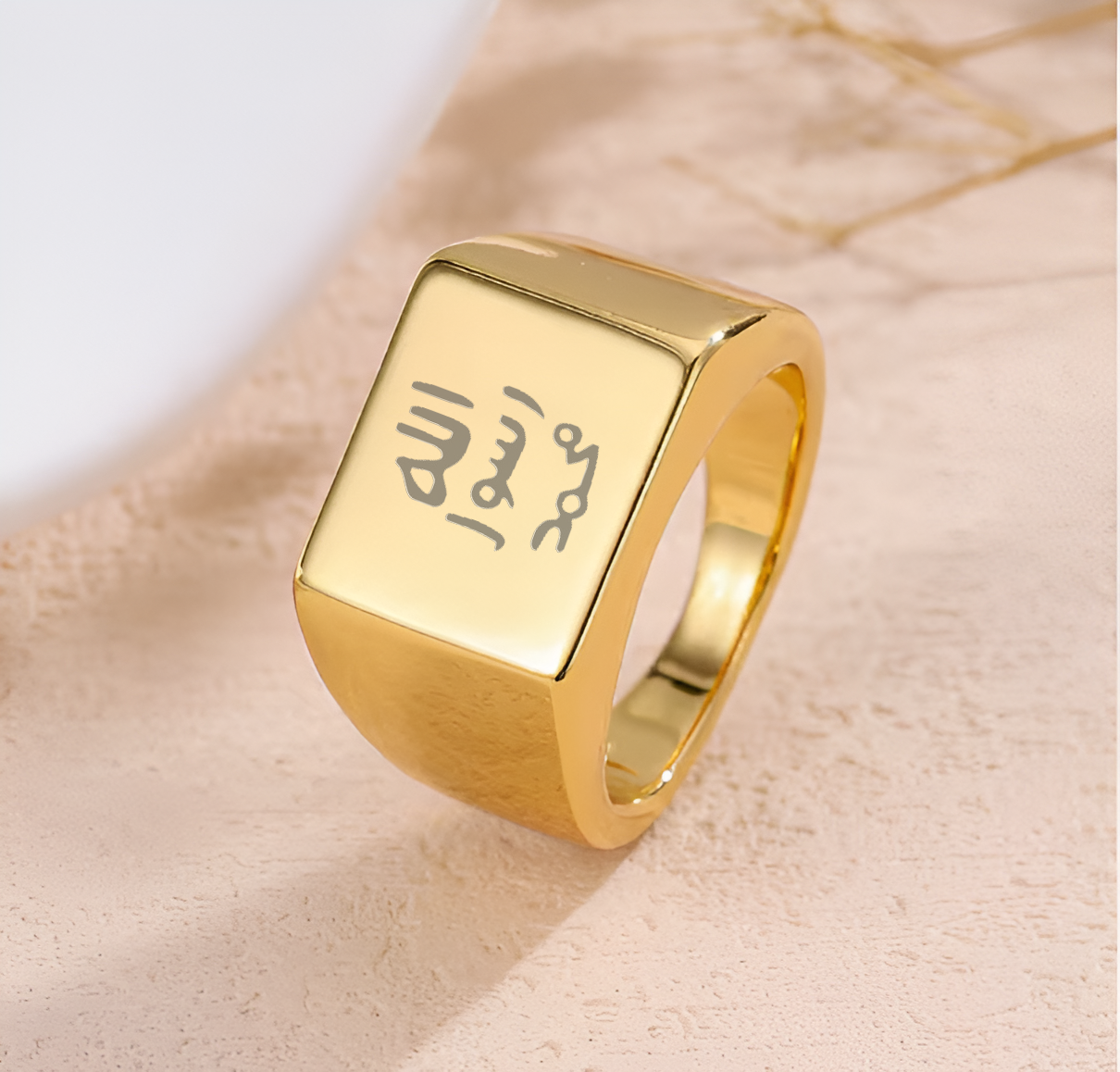 Introducing our exquisite Titanium Ring, a perfect blend of modern design and timeless elegance. Crafted from high-quality titanium, this ring features a sleek black finish with a bold, square face engraved with the sacred Arabic inscription “الله رسول محمد” (Allah Rasool Muhammad). This inscription symbolizes deep spiritual significance and devotion, making the ring not only a stylish accessory but also a meaningful emblem of faith.
