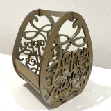 Celebrate Easter in style with our beautifully crafted Pollywood Laser-Cut Easter Egg Basket. Made from high-quality pollywood, this intricately designed basket features delicate laser-cut patterns that spell out “Happy Easter” in an elegant, flowing script. The natural wood finish adds a warm, rustic charm, making it a perfect centerpiece for your holiday décor.