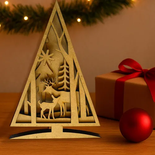 Bring a touch of nature and warmth into your home with this beautifully designed laser-cut polywood forest tree décor. Featuring an elegant triangular tree shape with finely cut deer and forest elements inside, this decorative piece reflects natural beauty, craftsmanship, and modern minimal design.