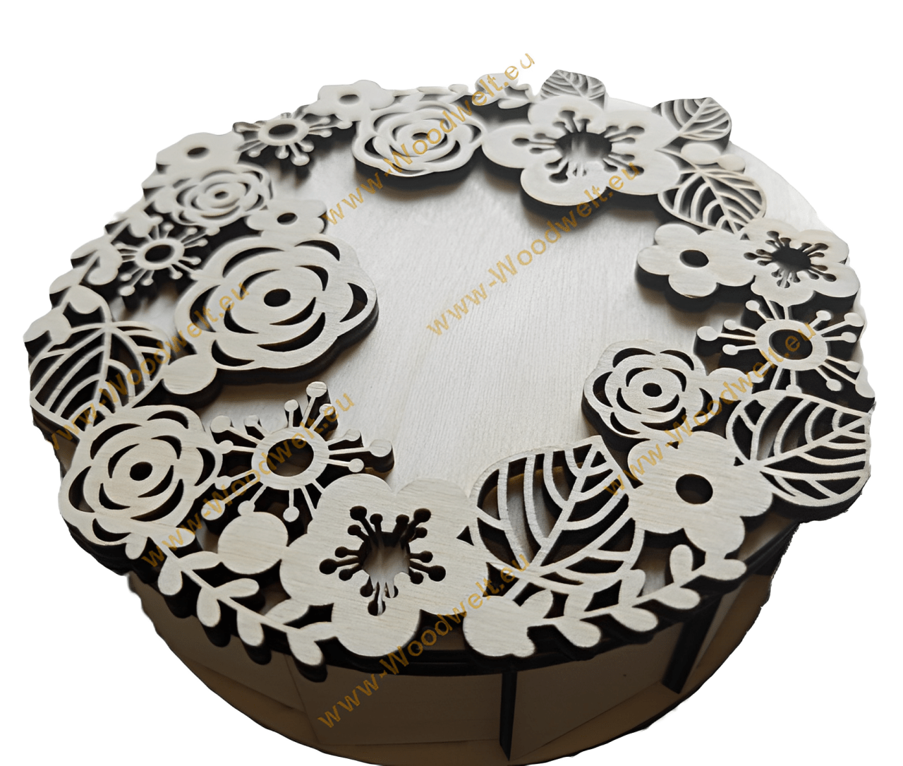 Designed with both functionality and beauty in mind, this polywood candy box is ideal for holding your favourite sweets and treats. The lid, adorned with an intricate floral pattern, is precision-cut using laser technology to ensure flawless detail. The natural wood finish and elegant design make this candy box not only a practical storage option but also a decorative piece that will enhance the charm of your living space.