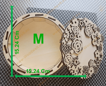 This exquisite keepsake box is crafted from high-quality polywood and features an intricate floral design laser-cut into the lid. The delicate patterns of roses, leaves, and other flowers add a touch of elegance, making it a perfect storage solution for precious memories and mementos. The round shape and smooth finish enhance its aesthetic appeal, making it a beautiful addition to any room décor.