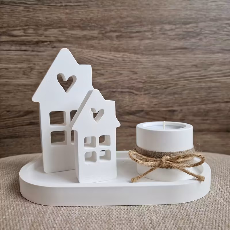 Artikel 32 3D Silicone House Candle Holder Moulds, House Shaped Silicone Moulds with Heart Cutouts