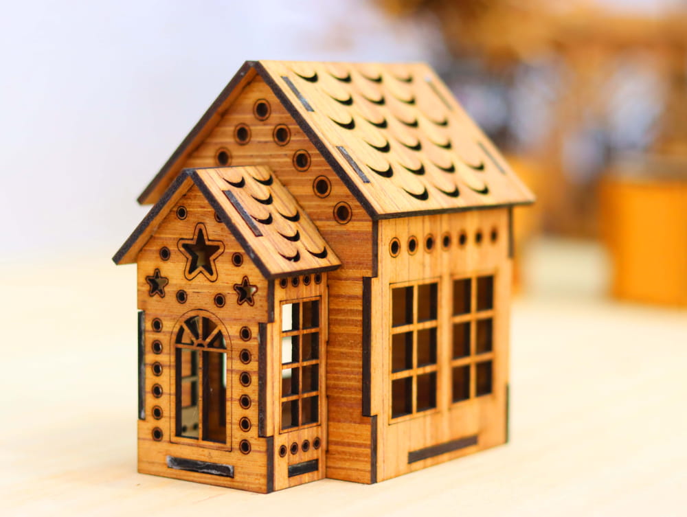 6. Crafted Wooden Playhouse: For those who appreciate craftsmanship, this wooden house is a beautiful example of detailed woodworking. It can be assembled and displayed as is, or customized to create a one-of-a-kind piece that reflects your personal style.