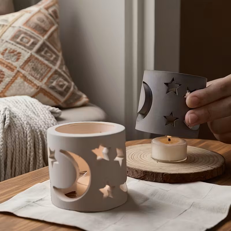 Create a warm and enchanting atmosphere with our beautifully designed moon and star tealight holders, expertly crafted from high-quality finished casting powder. These elegant holders feature delicate cut-out shapes of crescent moons and stars, allowing the soft glow of tealight candles to shine through and cast magical patterns around your space.