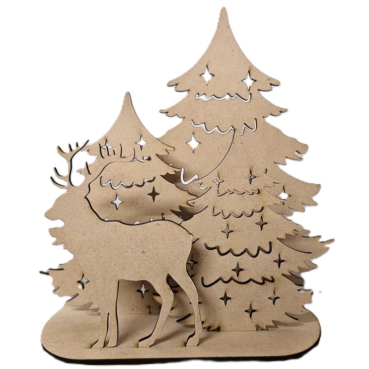 Create a warm and magical atmosphere with this Pollywood LED Forest & Deer Decorative Light. Designed with layered pine trees and a standing deer silhouette, this elegant piece brings the beauty of nature into your home. Crafted from high-quality eco-friendly pollywood, the fine laser-cut details glow beautifully when the warm LED light is switched on.