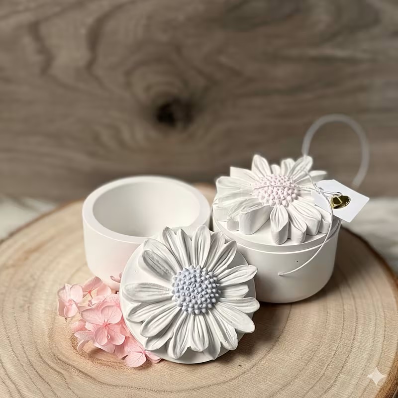 This finished casting powder decorative box is handcrafted with precision and care, featuring a beautifully detailed flower lid and a smooth, elegant surface. Made from high-quality casting powder, the box has a solid feel while maintaining a soft, minimalist aesthetic.