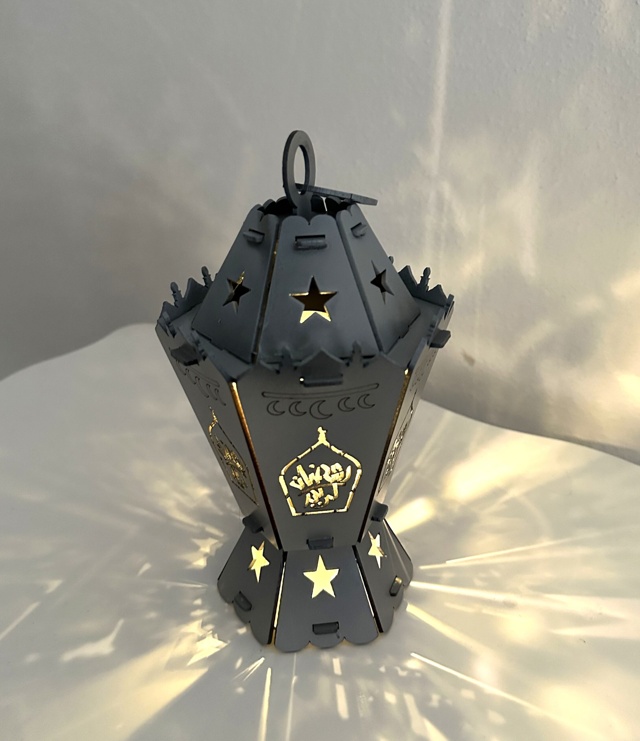 Crafted with precision and a smooth, refined finish, this lantern blends traditional Islamic décor with a modern aesthetic. It is ideal for enhancing living rooms, prayer areas, tables, or shelves. Whether used during Ramadan, Eid, or as year-round decorative lighting, this lantern adds a spiritual and elegant atmosphere to any space.