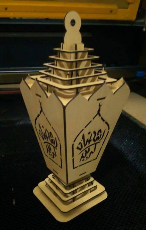 This finished Ramadan lantern for home use features an elegant traditional design with beautifully detailed star and crescent cut-out patterns. When illuminated, the lantern creates a warm, peaceful glow and stunning light reflections, making it a perfect decorative piece for Ramadan evenings and special occasions.